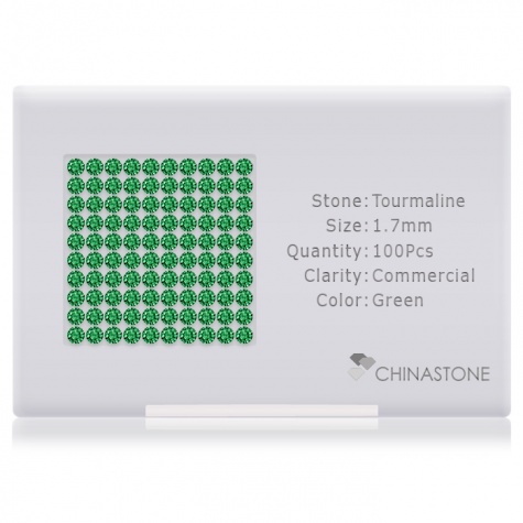 CT 34109CTC100170CQ A perfectly calibrated lot of 100 high-precision cut natural chrome-tourmaline gemstones, which are secured in a purpose-built box and accompanied by a Certificate of Authenticity. Each round shaped stone on average weighs 0.022 carat, measuring 1.7mm in length, 1.7mm in width and 1.105mm in depth, and features an exceptional brilliant cut and finish, along with an absolute minimum variance of color difference.
